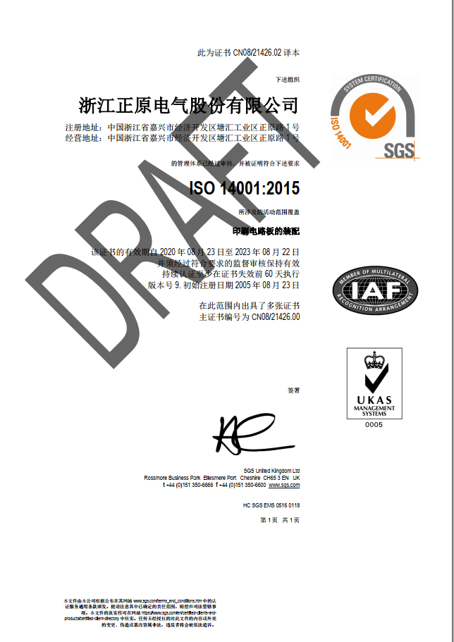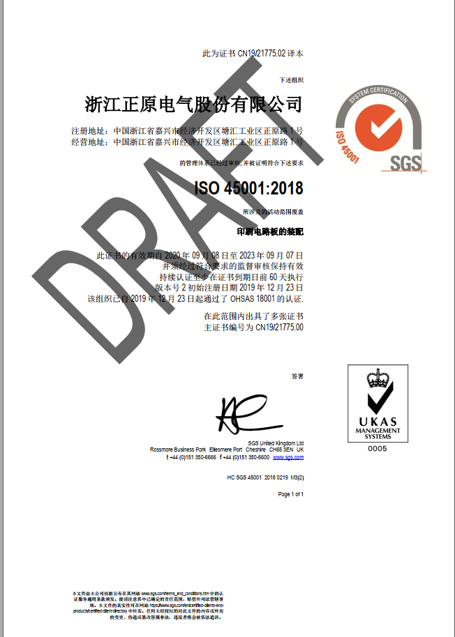 正原電氣已獲體系認證:已通過ISO9001、ISO14001、ISO45001管理體系認證 。